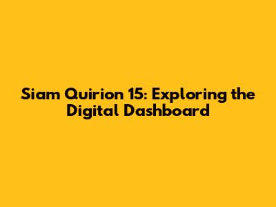 Siam Quirion 15: Exploring The Digital Dashboard