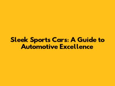 Sleek Sports Cars: A Guide To Automotive Excellence