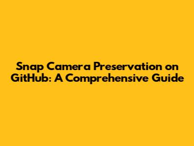 Snap Camera Preservation On GitHub: A Comprehensive Guide