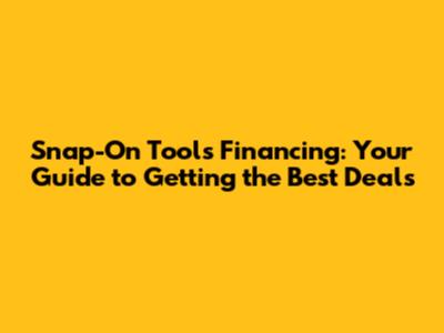 Snap-On Tools Financing: Your Guide To Getting The Best Deals