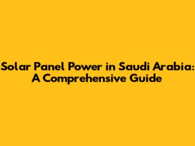 Solar Panel Power In Saudi Arabia: A Comprehensive Guide