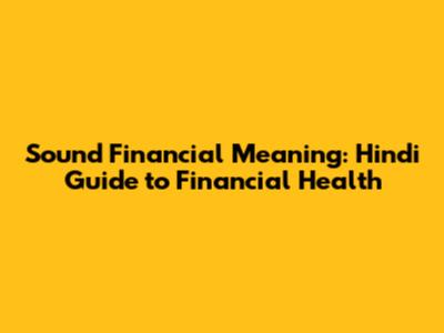 Sound Financial Meaning: Hindi Guide To Financial Health