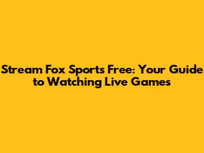 Stream Fox Sports Free: Your Guide To Watching Live Games