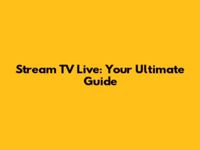 Stream TV Live: Your Ultimate Guide