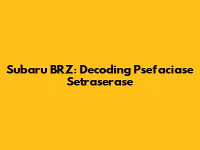 Subaru BRZ: Psefaciase Setraserase - What Is It?