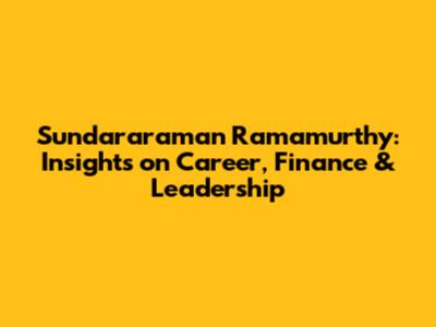 Sundararaman Ramamurthy: Insights On Career, Finance & Leadership