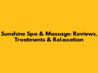 Sunshine Spa & Massage: Reviews, Treatments & Relaxation