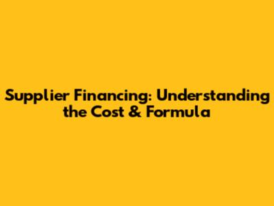 Supplier Financing: Understanding The Cost & Formula