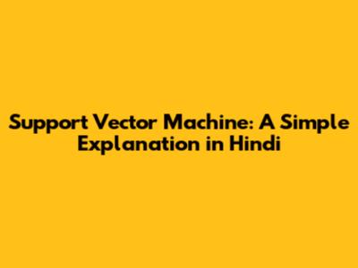 Support Vector Machine: A Simple Explanation In Hindi
