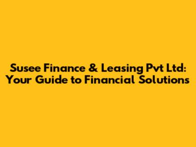 Are you looking for reliable financial solutions? Let's dive into Susee Finance & Leasing Pvt Ltd, a company that might just be the partner you need. In this article, we’ll explore what Susee Finance & Leasing is all about, their services, and how they can help you achieve your financial goals. Whether you're a seasoned investor or just starting out, understanding your financial options is crucial, and Susee Finance & Leasing aims to provide those options with tailored solutions.