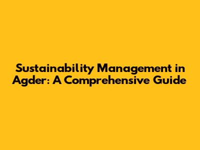 Sustainability Management In Agder: A Comprehensive Guide