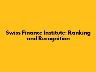 Swiss Finance Institute: Ranking And Recognition