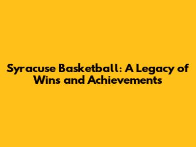 Syracuse Basketball: A Legacy Of Wins And Achievements