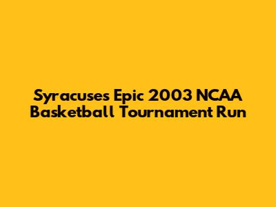 Syracuse's Epic 2003 NCAA Basketball Tournament Run