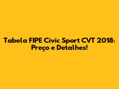 Tabela FIPE Civic Sport CVT 2018: Preço E Detalhes!