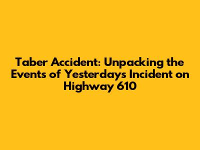 Hey everyone, let's dive into the details surrounding the Taber accident that occurred yesterday on Highway 610. I know a lot of you are probably wondering what exactly went down, so I've put together a comprehensive look at the situation, piecing together the information available to give you a clear picture. We'll be covering the confirmed facts, the ongoing investigations, and what the local community is saying about the incident. This is important information, and it's essential to understand the details, especially if you or someone you know were potentially affected or use this route regularly. So, let's break it down, shall we?