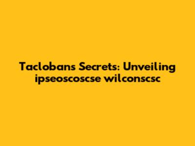 Tacloban's Secrets: Unveiling Ipseoscoscse Wilconscsc