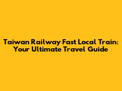 Taiwan Railway Fast Local Train: Your Ultimate Travel Guide