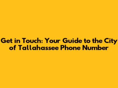 The City of Tallahassee Phone Number: A Summary