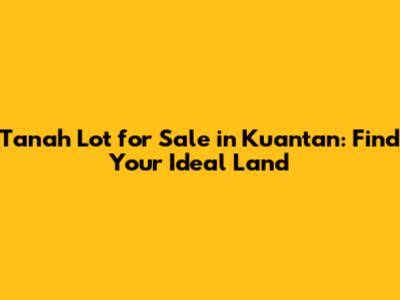 Hey guys! Looking to invest in some prime real estate? Or maybe you're dreaming of building your perfect home from the ground up? Well, you're in luck! This article is your go-to guide for finding the perfect tanah lot for sale in Kuantan. Kuantan, with its beautiful beaches, thriving economy, and laid-back lifestyle, is quickly becoming a hotspot for property investment. So, let's dive in and explore the ins and outs of securing your own piece of this paradise.