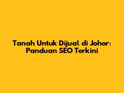 Tanah Untuk Dijual Di Johor: Panduan SEO Terkini