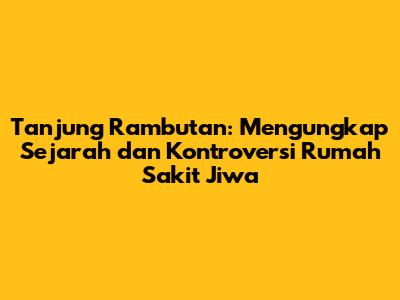 Tanjung Rambutan: Sejarah Dan Kontroversi Rumah Sakit Jiwa