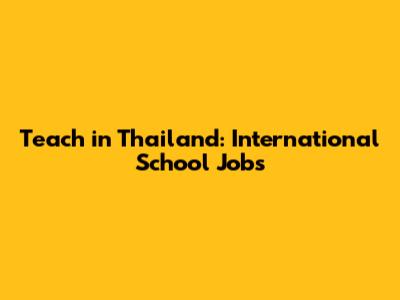 Teach In Thailand: International School Jobs