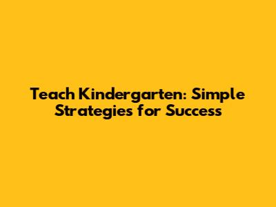 Teach Kindergarten: Simple Strategies For Success