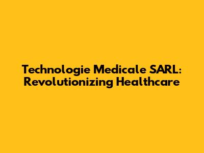 Technologie Medicale SARL: Revolutionizing Healthcare