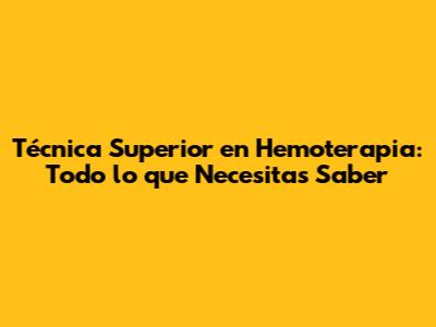 Hey guys! ¿Alguna vez te has preguntado sobre la Técnica Superior en Hemoterapia? Si estás buscando una carrera en el área de la salud y te apasiona el mundo de la sangre y sus componentes, ¡este artículo es para ti! Vamos a sumergirnos en este campo fascinante, explorando qué es la hemoterapia, qué hace un técnico superior en esta área, dónde puedes estudiar y mucho más. Prepárate para un viaje informativo que te ayudará a decidir si esta es la carrera de tus sueños.