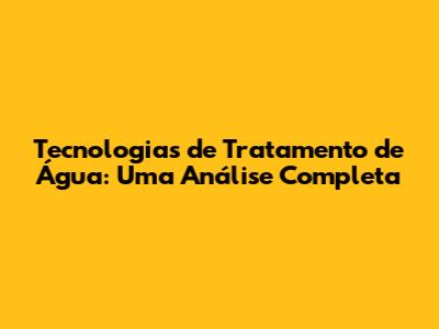 Tecnologias De Tratamento De Água: Guia Essencial