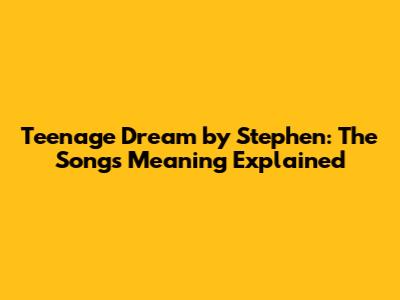Teenage Dream By Stephen: The Song's Meaning Explained