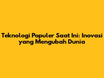 Teknologi Populer Saat Ini: Inovasi Yang Mengubah Dunia
