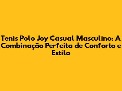 Tenis Polo Joy Casual Masculino: Conforto E Estilo Em Cada Passo