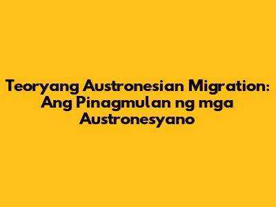 Ano Nga Ba ang Teoryang Austronesian Migration?