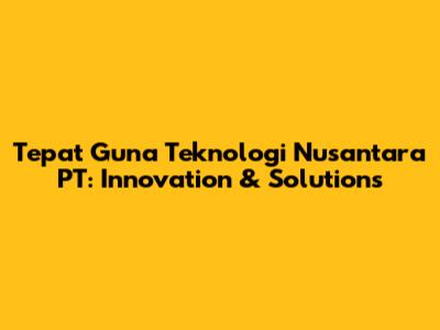 Tepat Guna Teknologi Nusantara PT: Innovation & Solutions