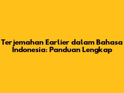 Terjemahan Earlier Dalam Bahasa Indonesia: Panduan Lengkap
