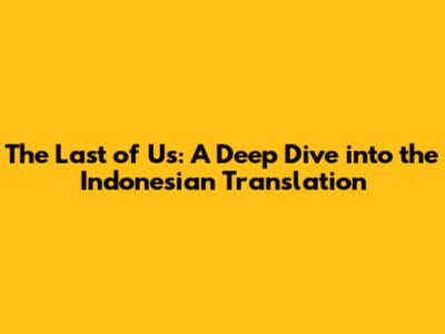 The Last Of Us: Exploring The Indonesian Translation
