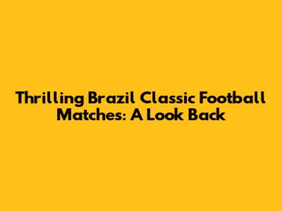 Thrilling Brazil Classic Football Matches: A Look Back