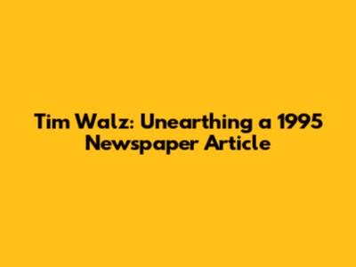 Tim Walz: Unearthing A 1995 Newspaper Article