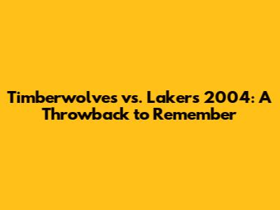 Timberwolves Vs. Lakers 2004: A Throwback To Remember