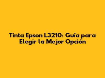 Tinta Epson L3210: Guía Para Elegir La Mejor Opción