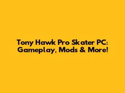 Tony Hawk Pro Skater PC: Gameplay, Mods & More!