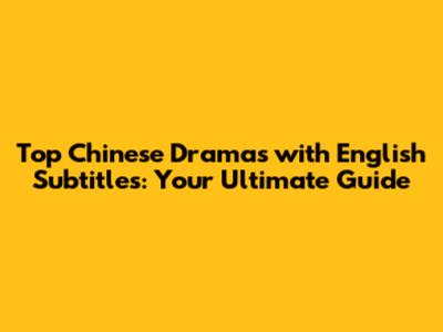 Top Chinese Dramas With English Subtitles: Your Ultimate Guide