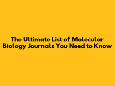 Top List Of Molecular Biology Journals