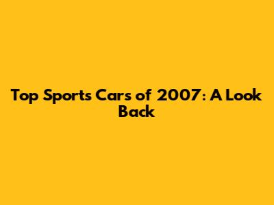 Top Sports Cars Of 2007: A Look Back