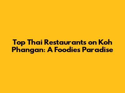 Top Thai Restaurants On Koh Phangan: A Foodie's Paradise