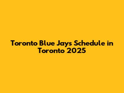 Toronto Blue Jays Schedule In Toronto 2025