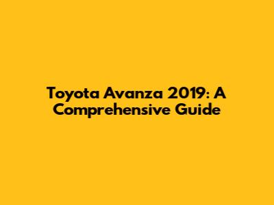 Toyota Avanza 2019: A Comprehensive Guide