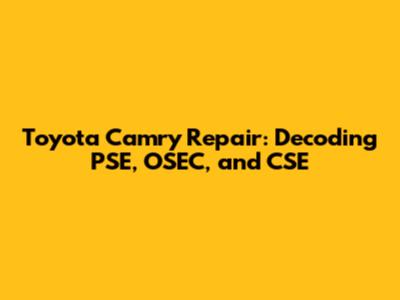 Toyota Camry Repair: Decoding PSE, OSEC, And CSE